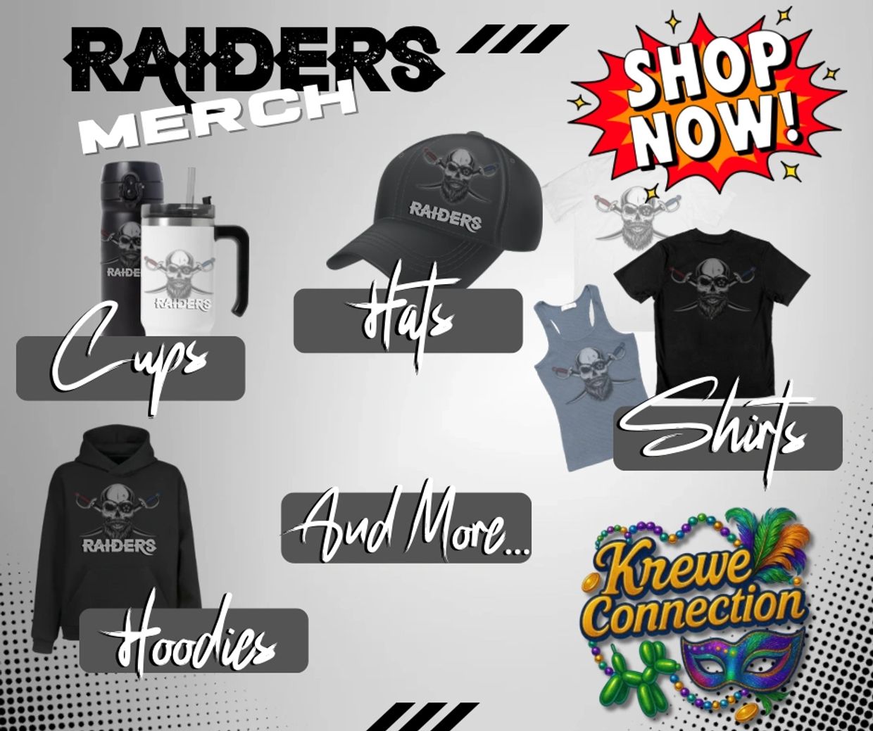 The GC Raiders are passionate about football and we want to share our love for the sport with others. We have partnered with an amazing local vendor, Krewe Connection, to provide the best swag available for Raider Nation.