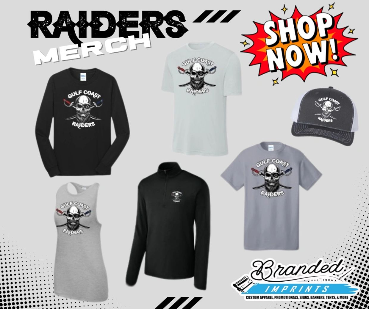 The GC Raiders are passionate about football and we want to share our love for the sport with others. We have partnered with an amazing local vendor, Branded Imprints, to provide the best swag available for Raider Nation.
